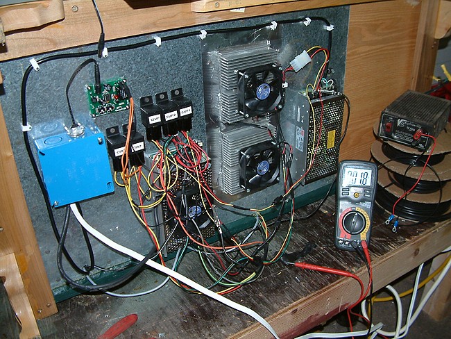 Okay - the computer power supply didn't work out. I thought that maybe the resting load would be enough to keep it running - it was not. So my cheap solution didn't work. Here you can see the new power supply installed and wiring being run and tested. |