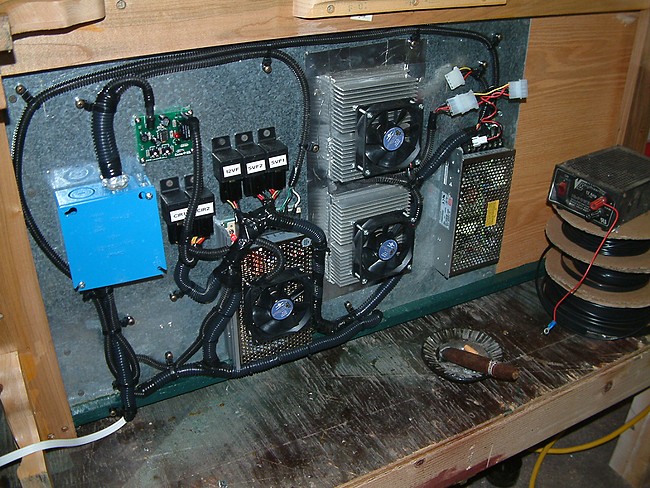 Better picture showing everything hooked up and all the wires cleaned up. I will have to fabricate a couple of covers to go over the AC connections - but everything else is DC current.